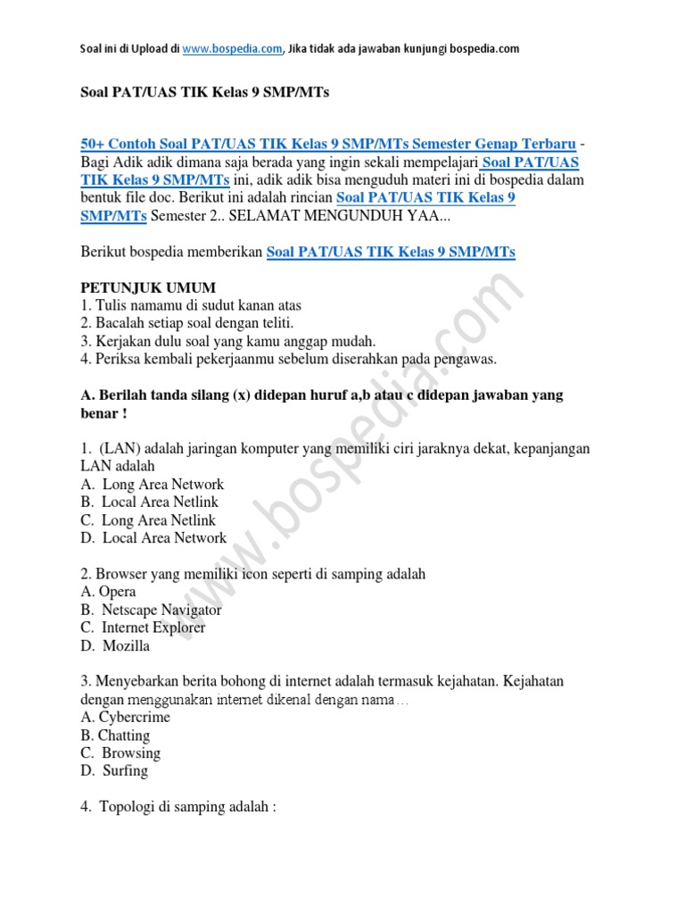 Lengkap 50 Contoh Soal Uas Tik Kelas 9 Smp Mts Semester Ganjil Terbaru Bospedia