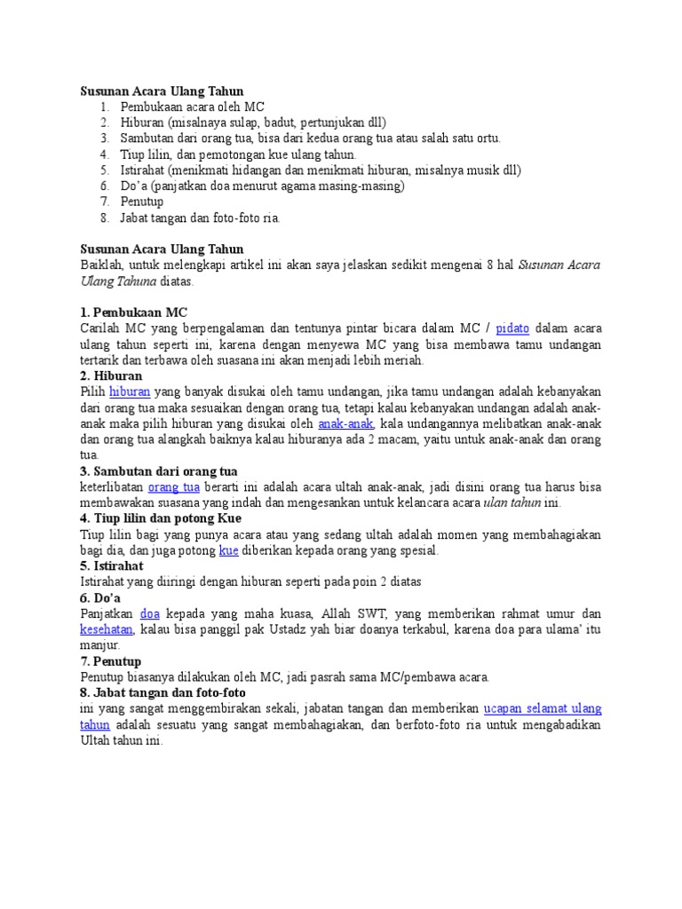 Susunan Acara Ulang Tahun Yang Baik Dan