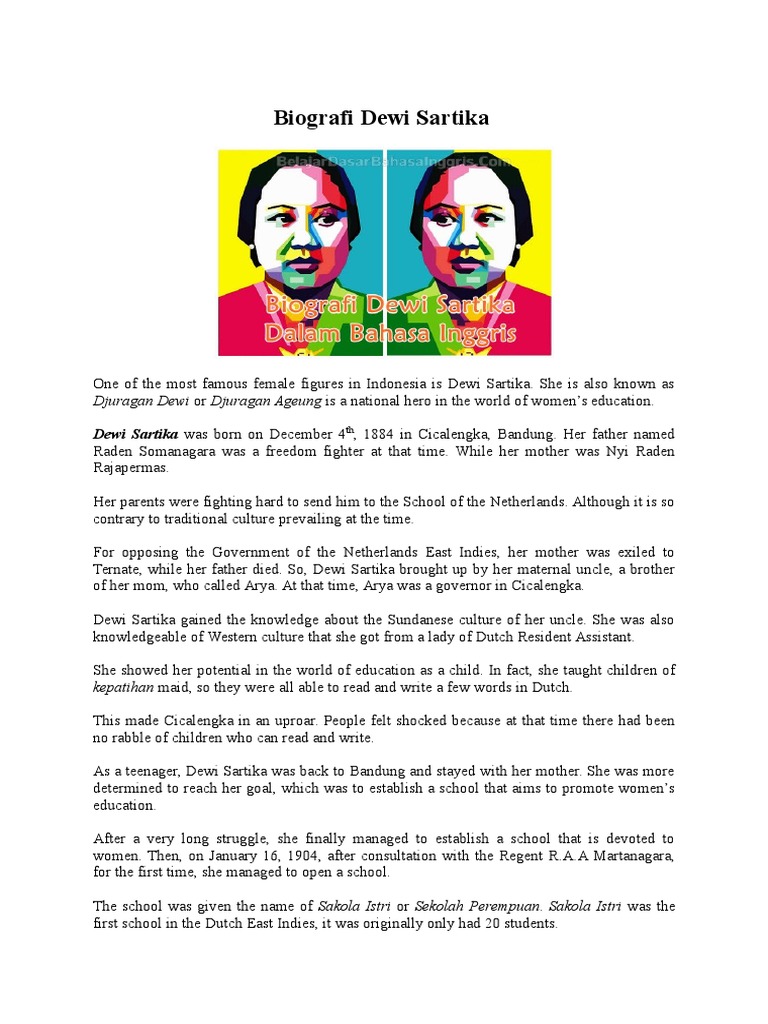 Soekarno is also well-known as the founding Father of Indonesia was the first president known as proclaimer with Dr. My name is Sita Nur Haryati and I was born on January 5 th 1998 in Bogor. Contoh Biografi Patimura Dalam Bahasa Inggris Beserta Artinya Lengkap.