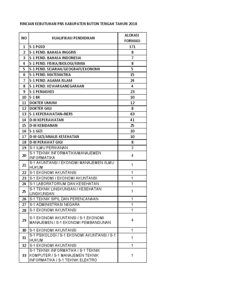 Formasi Dan Jabatan Cpns 2018 Pemerintah Kab Buton Tengah Icpns
