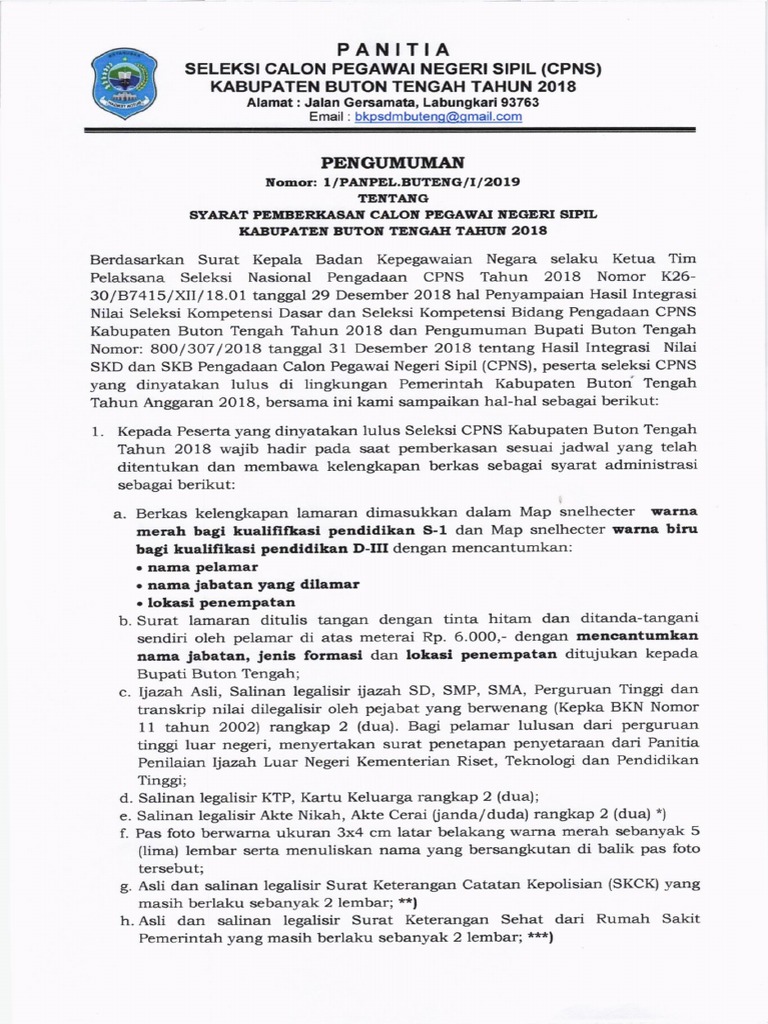 Syarat Pemberkasan Cpns Kabupaten Buton Tengah Pdf