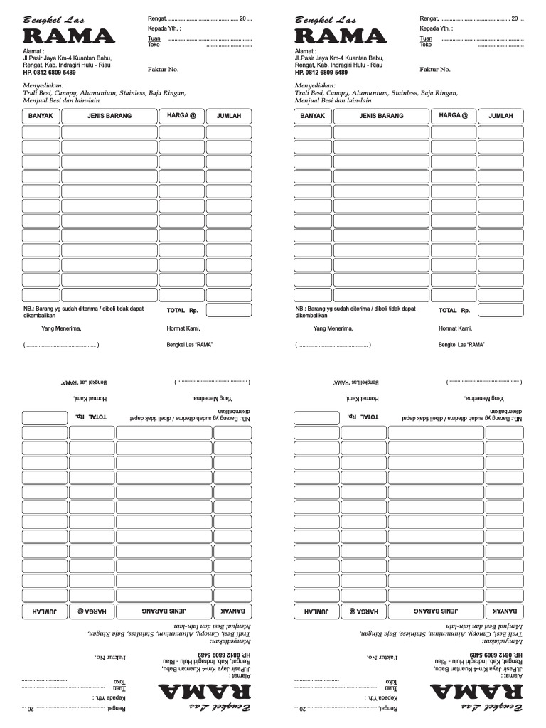 File spanduk bengkel las format CDR ini hanya sebagai contoh saja dengan harapan lahir imaginasi-imaginasi yang lebih keren dan kreatif. Nota disebut juga Faktur penjualan yaitu sebuah dokumen yang dimaksudkan untuk pernyataan tagihan yang harus dibayar oleh customer atau pembeli. Kami juga menerima pesanan spanduk banner atau baligho secara online ke seluruh pelosok nusantara Pesan online lebih mudah karena tidak perlu keluar rumah terutama tidak perlu meninggalkan pekerjaan.