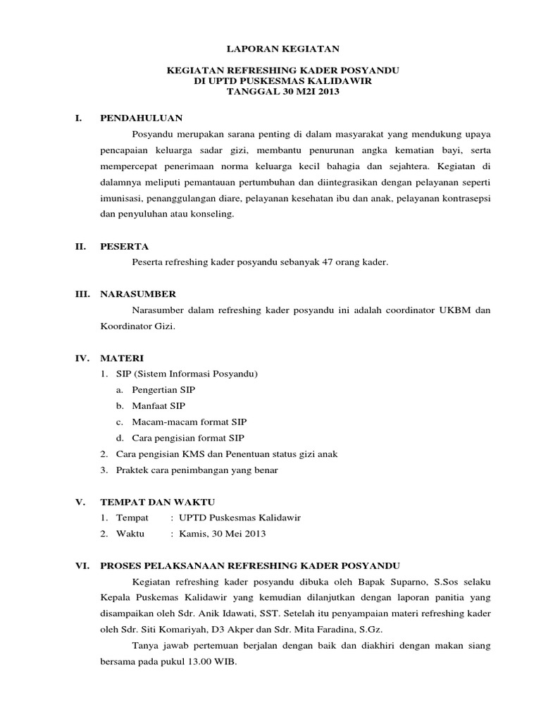 Laporan Kegiatan Refreshing Kader Posyandu Docx