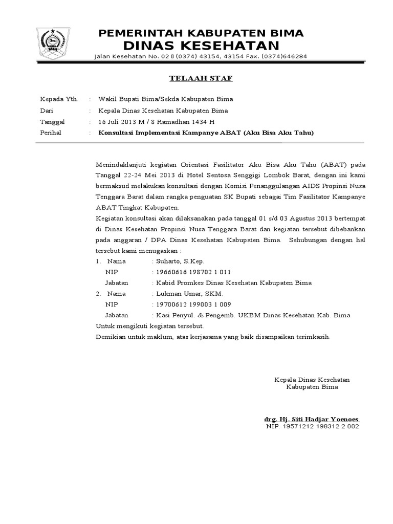 Pada sekretariat yang bersangkutan atas surat telahaan staf yang dilayangkan oleh kepala dinas yang bersangkutan perihal permohonan sertifikat atas tanah negara oleh pengurus koperasi. Contoh format surat berita acara pembayaran. Contoh Telaahan Staf Penataan Pns.