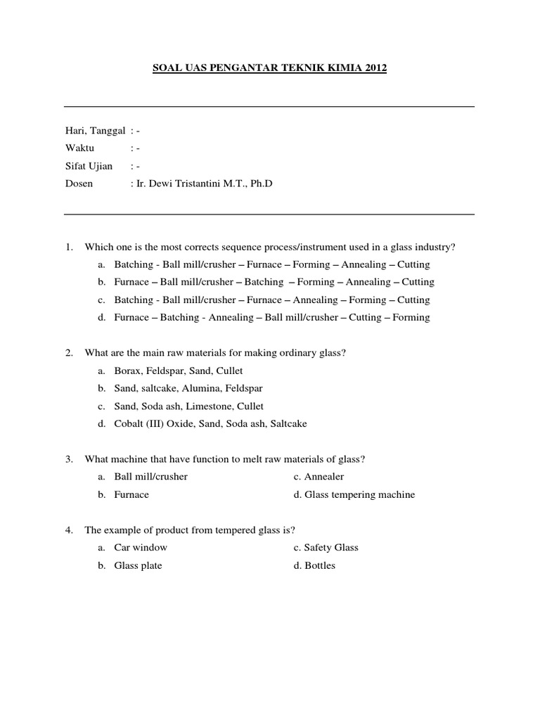Soal Dan Jawaban Uas Pengantar Teknik Kimia 2012 Steel Sodium Hydroxide