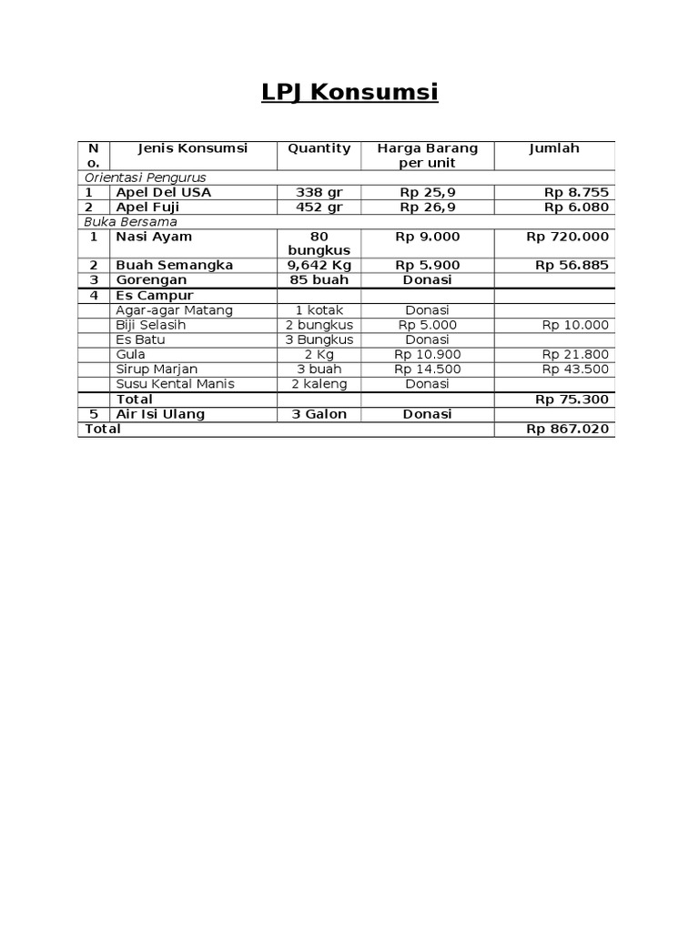 Lpj Konsumsi Orientasi Pengurus