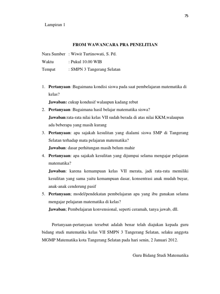Contoh Pertanyaan Wawancara Dengan Guru Matematika Seputaran Guru