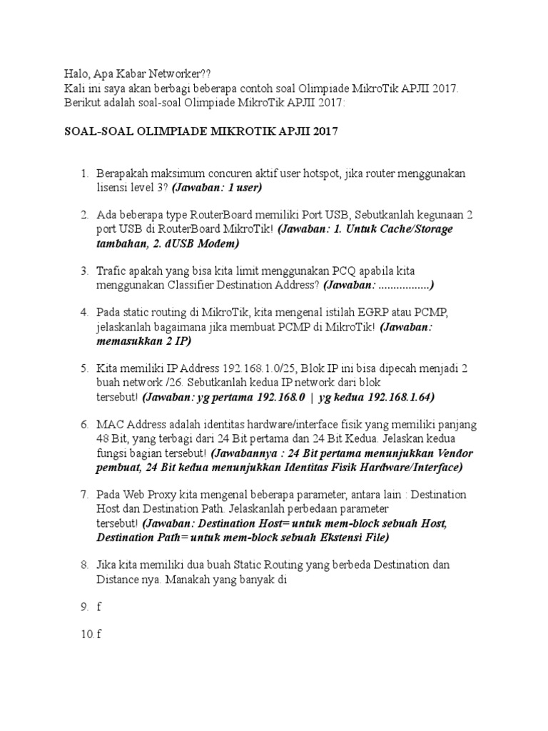 Contoh Soal Mikrotik Pilihan Ganda Dan Jawabannya Barisan Contoh